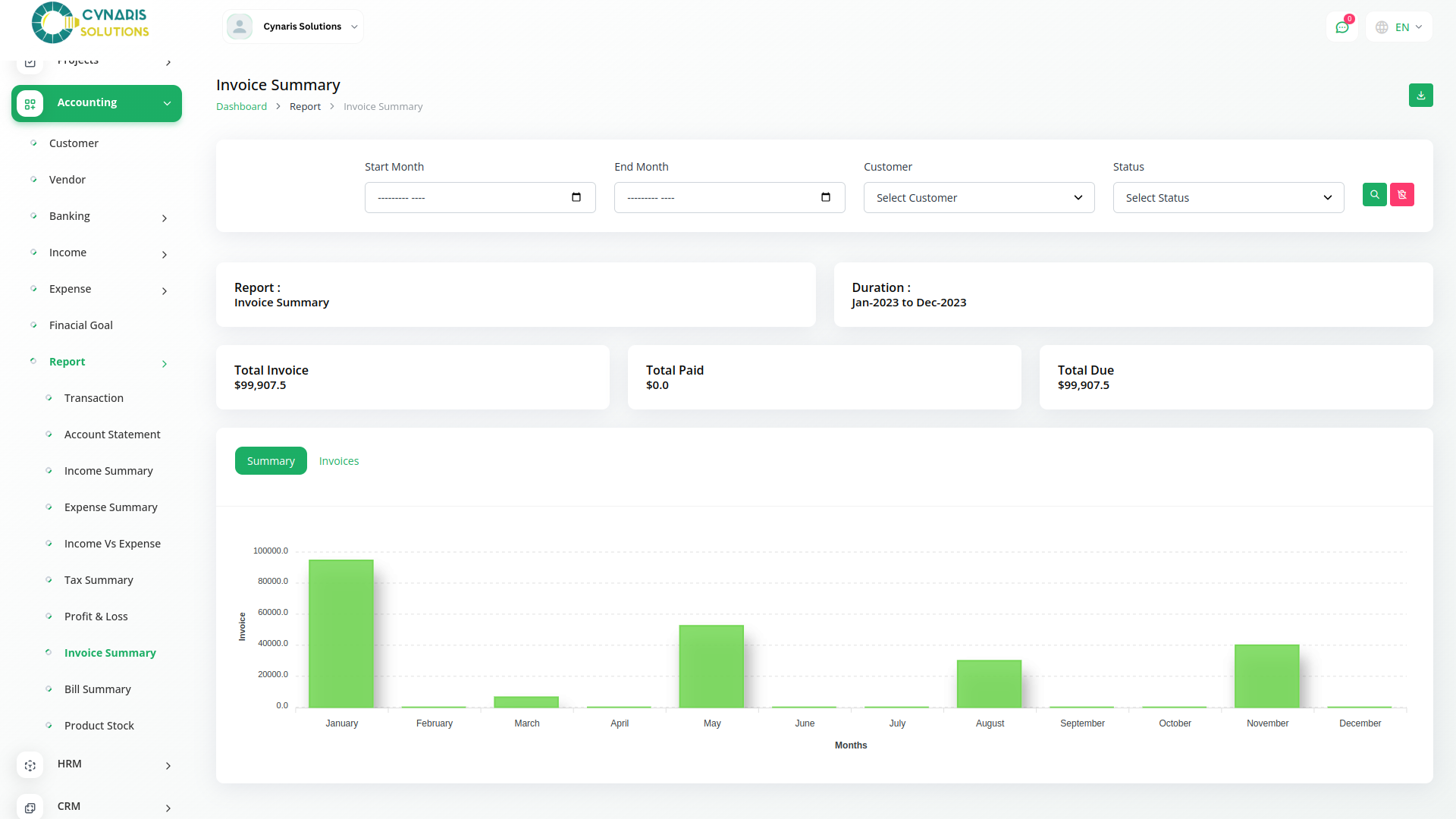 Get a report on transactions with an easy filtering option. Download the required account statements in either PDF, CSV, or Excel format. You get duly prepared reports on individual Income, Expenses, Tax, Invoice, and bill summary. Filter them based on Account, category, and customers. Also, a graphical display of the Income VS Expense chart along with a detailed calculation of Profit and Loss will help you make informed decisions. Filter the tax summary and Income VS Expense chart based on financial years.