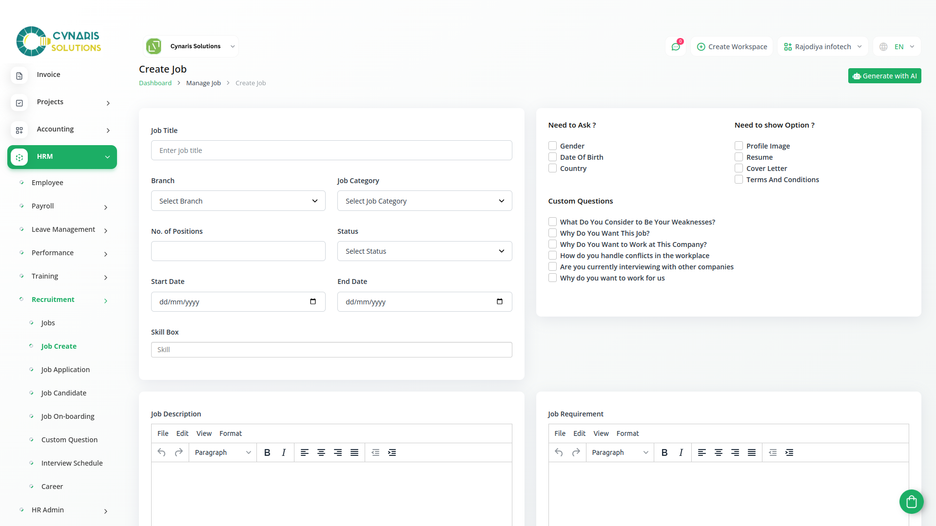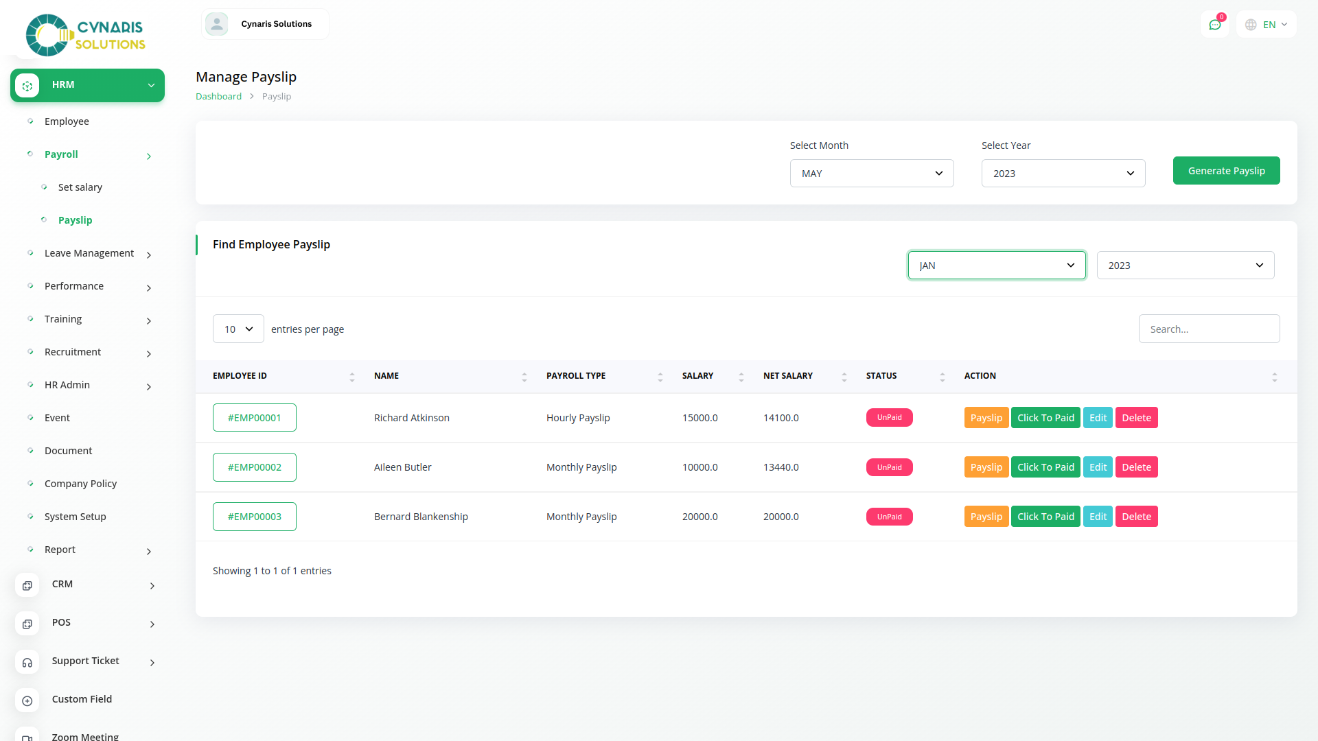 With Cynaris HRM, you can manage key employee matters, recruit new candidates, boost employee productivity, and pay your employees for their hard work - Without stress, all from one place. Whether youre a consultant, small business owner, or large corporation - the system is designed for everyone.
