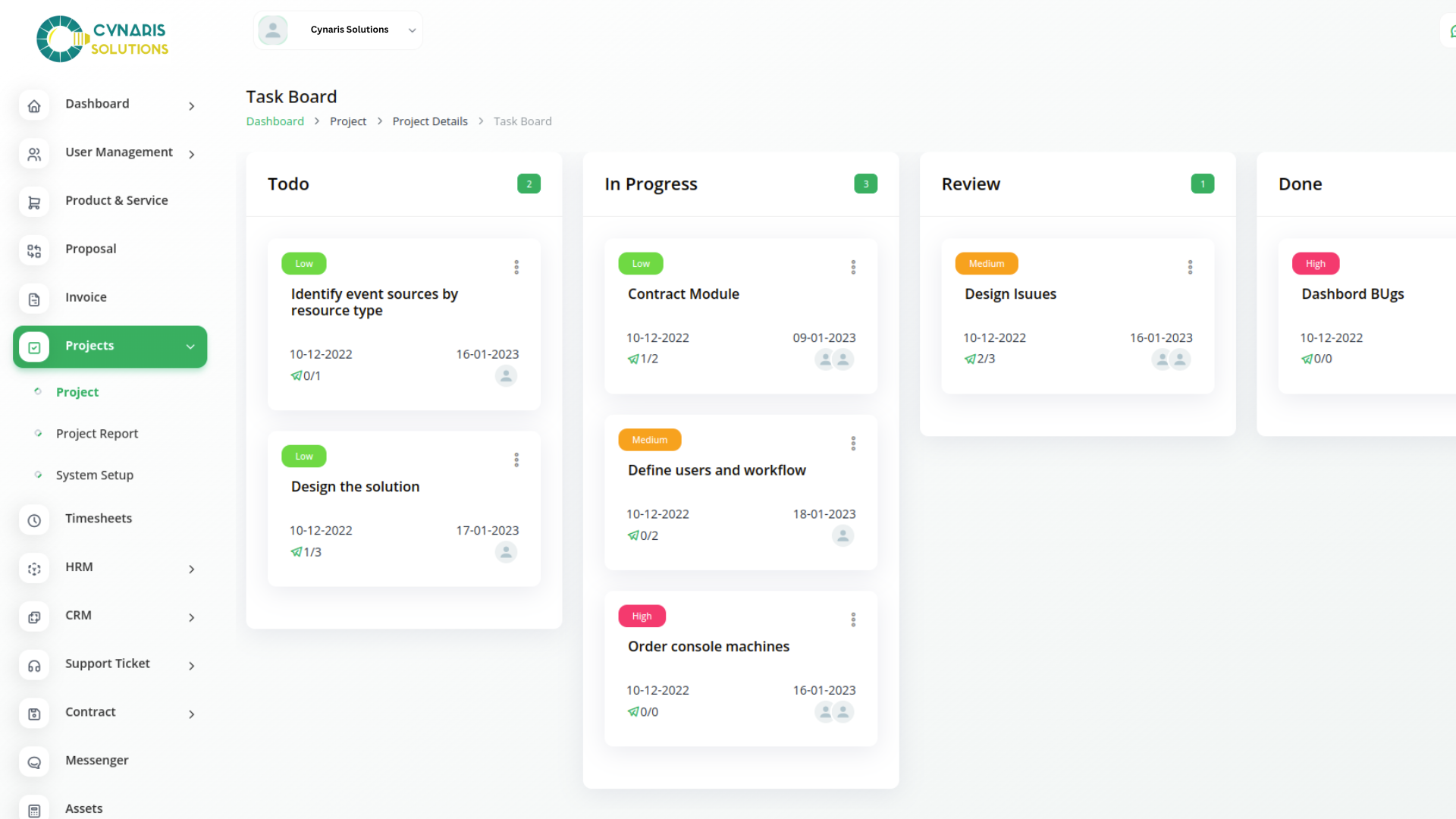 With Cynaris Project Management, you can conveniently manage all your business functions from a single location.